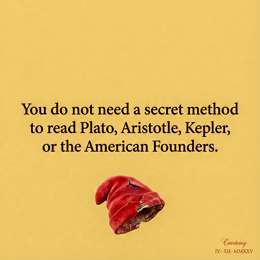 You do not need a secret method to read Plato, Aristotle, Kepler, or the American Founders.