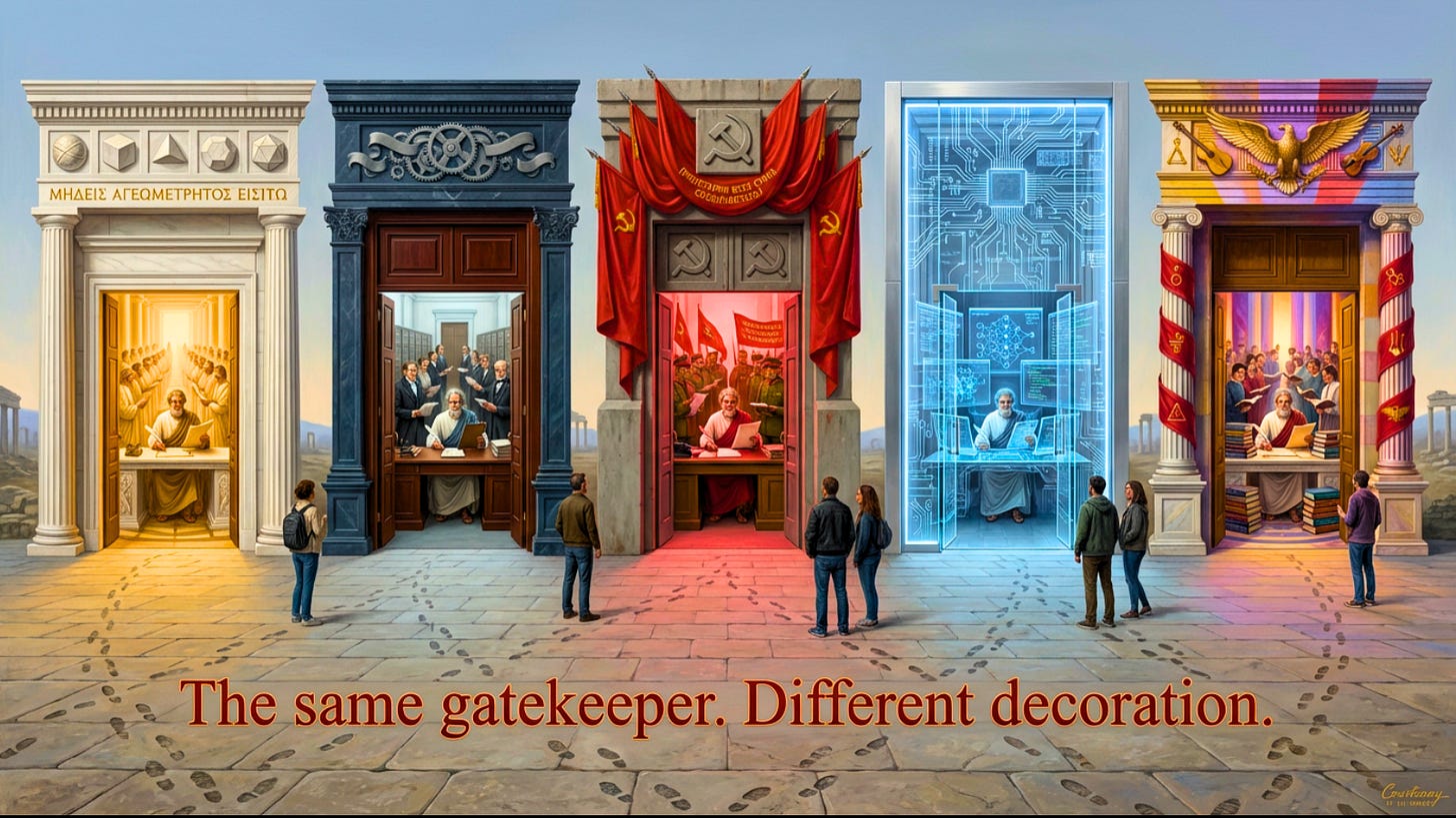 We have seen this movie before: the Bolshevik Central Committee, the Nazi Sicherheitsdienst, the Islamic Revolutionary Guard Council, the Chinese Communist Party’s Politburo Standing Committee—all of them claimed (and claim) proprietary access to a higher mode of knowing that justifies their rule over the unenlightened masses.