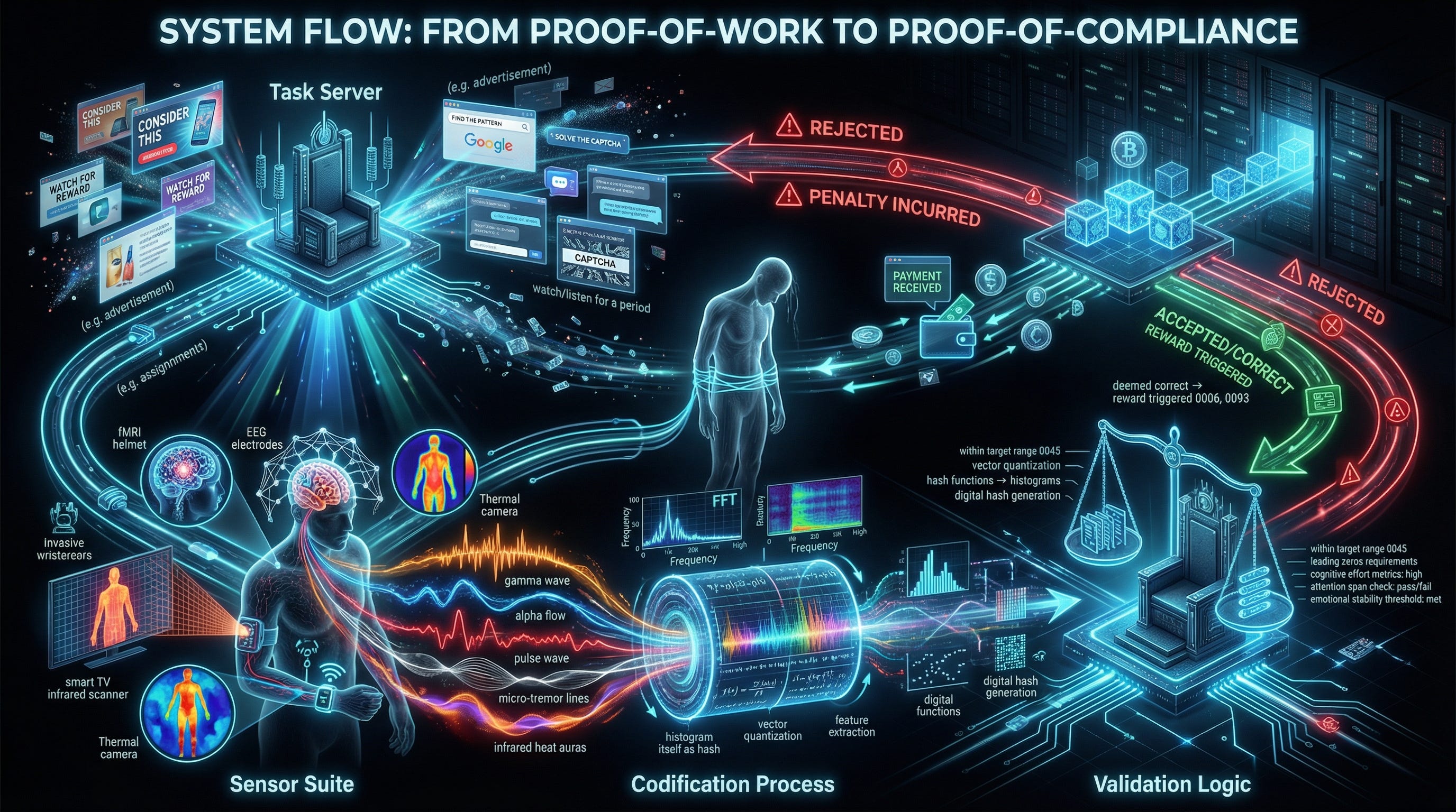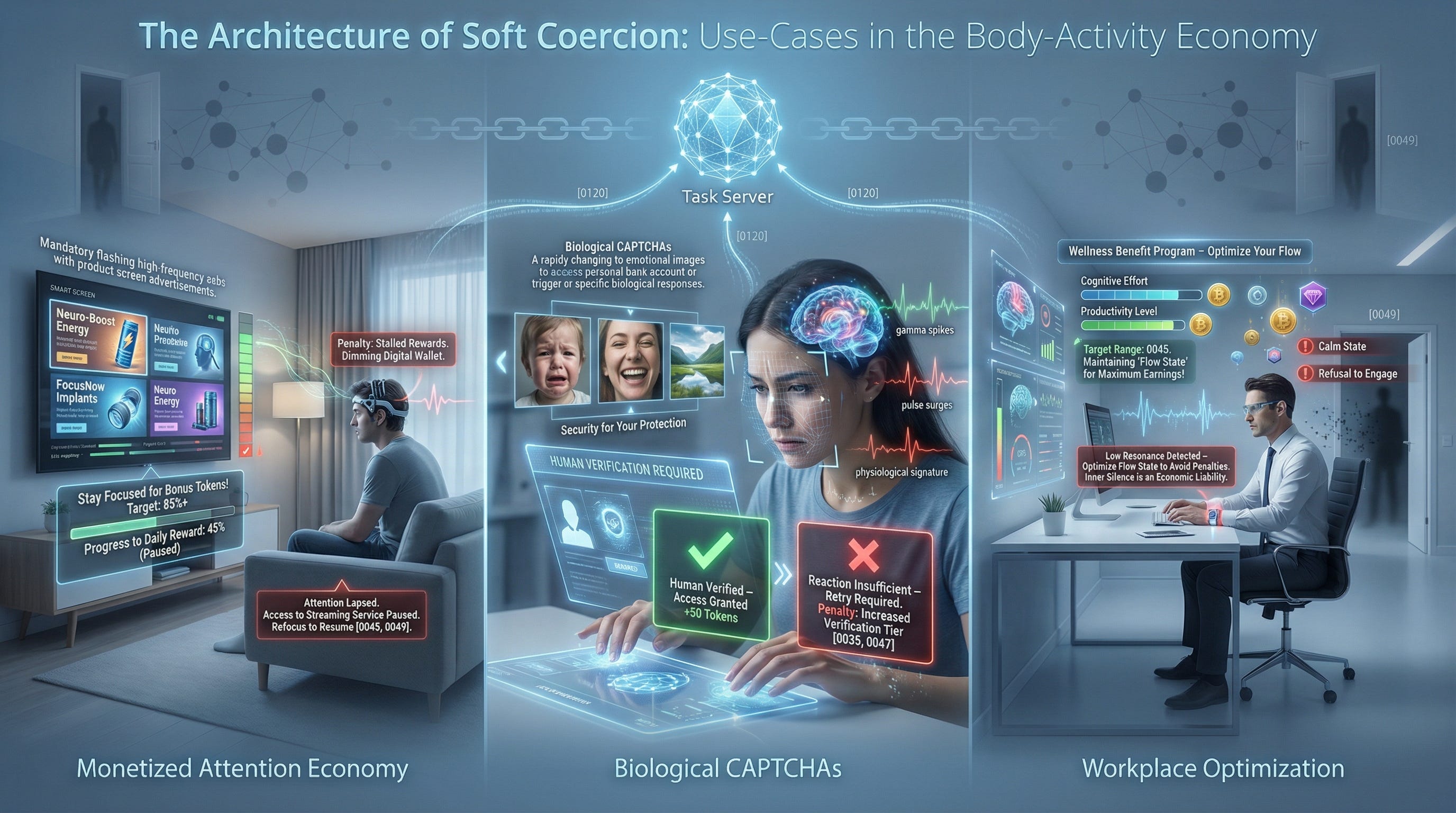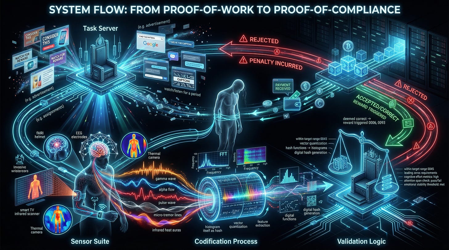 If the body can be used to satisfy validation conditions without the conscious mind, then the system doesn’t merely monetize action—it monetizes being.