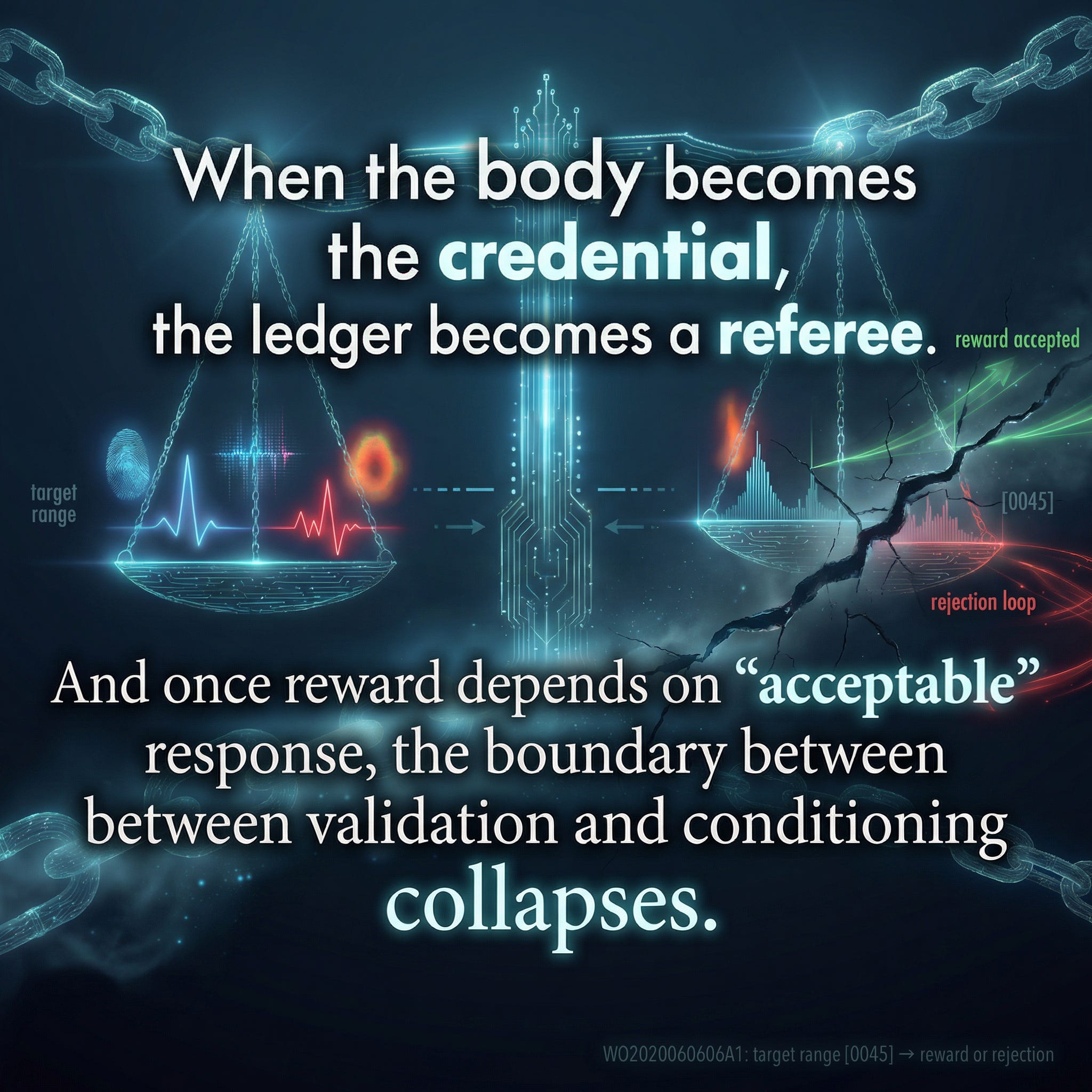 Bottom line: When the body becomes the credential, the ledger becomes a referee.
