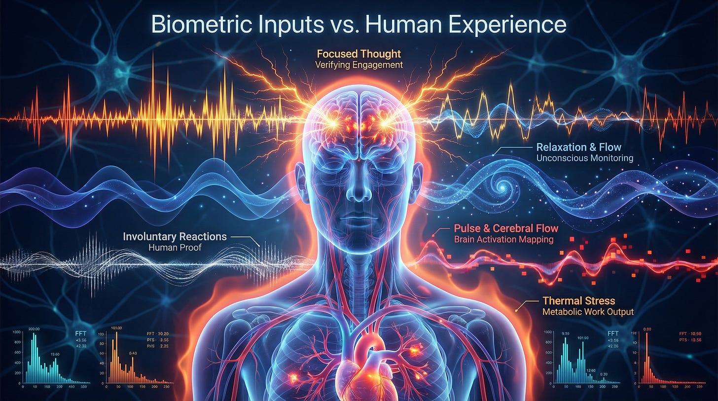 For decades, the digital frontier extracted our metadata—the exhaust of clicks and queries. Now the frontier moves inward: the body becomes the interface, and involuntary physiology becomes a candidate input for economic validation.